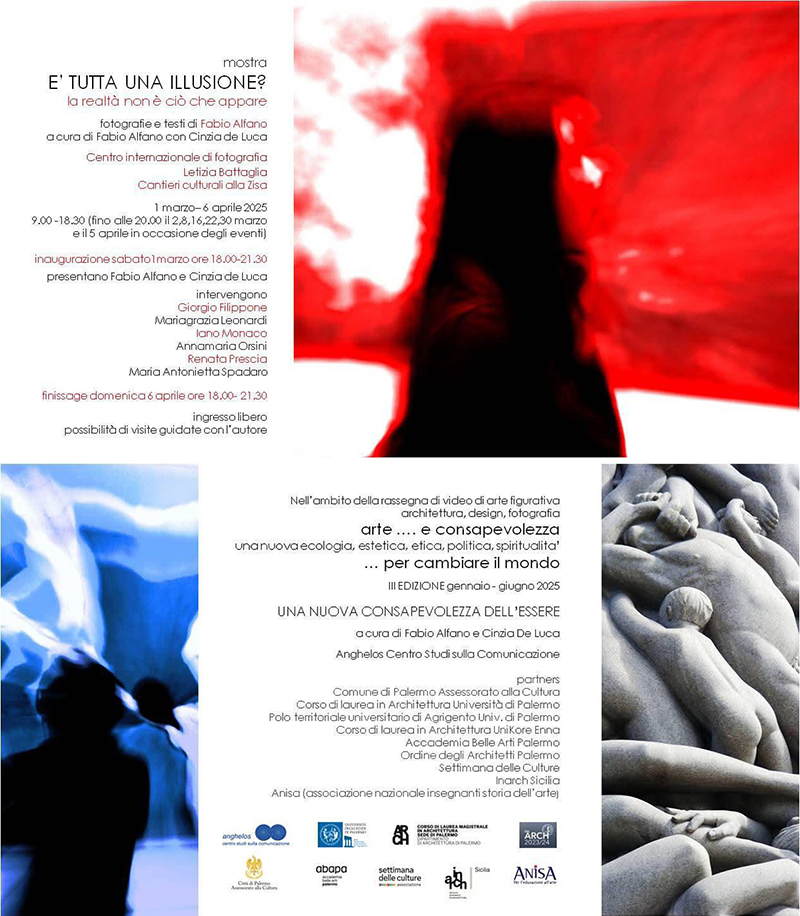 Sabato e domenica 1 e 2 marzo 2025, al CENTRO INTERNAZIONALE DI FOTOGRAFIA LETIZIA BATTAGLIA, ai Cantieri culturali alla Zisa, APERTURA della III edizione della rassegna di video ‘ARTE E CONSAPEVOLEZZA… PER CAMBIARE IL MONDO’ organizzata dal Centro studi Anghelos.