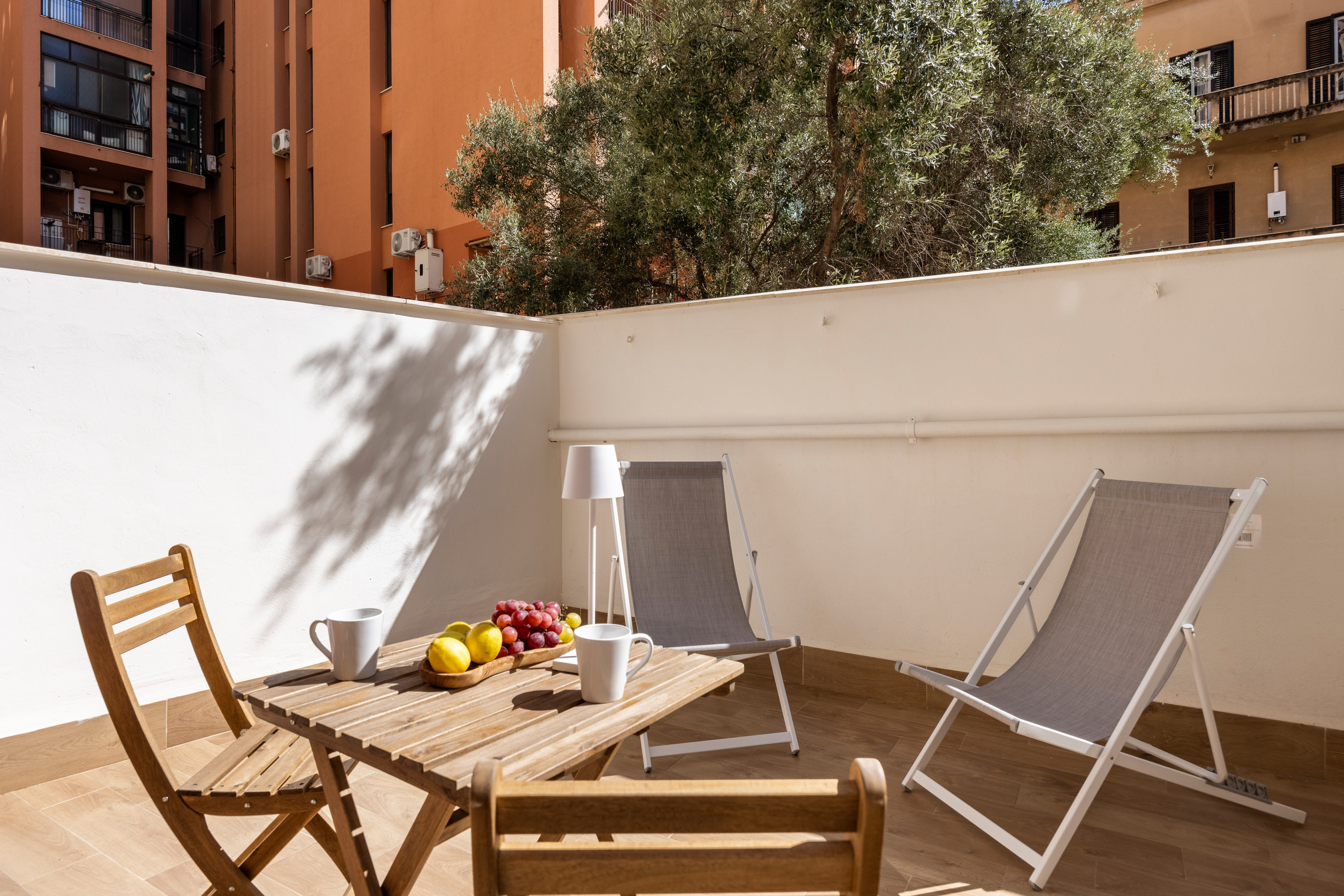 Monovano di 30 Mq silenzioso e soleggiato ben arredato con un bel terrazzo di 16 Mq, nel quartiere bello e sicuro della città a pochi passi dal centro a 100 metri da Viale Libertà il viale principale in cui passano i bus per tutte le destinazioni.