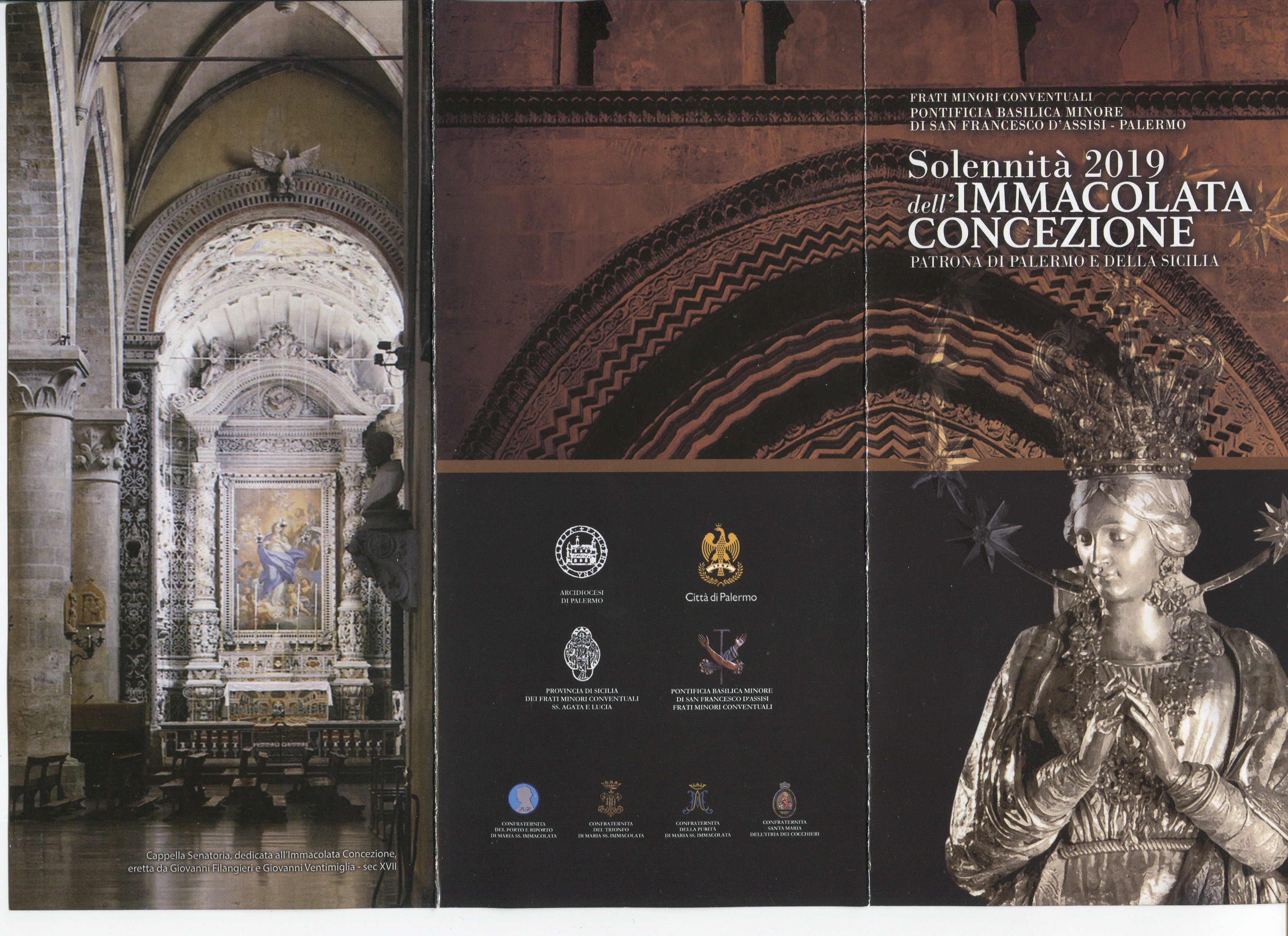 Nel 1624 scoppiò la peste, che incominciò a mietere migliaia di vittime; allora il Senato palermitano cercò di porre rimedio alla ferocia del morbo con ogni mezzo, adottando anche strumenti di natura spirituale. Infatti, il Senato, fece ricorso all'intercessione dell'Immacolata e di S. Rosalia, celebrando solennemente e in perpetuo la festa delle due icone religiose. L'atto di fede compiuto dal Senato indusse il cardinale dell'epoca ad emettere il voto di credere e di difendere, fino all'ultimo spirito di vita, l'Immacolata Concezione della Beata Vergine Maria e di digiunare alla vigilia della festa. Per questo motivo fu deciso di portare in processione il simulacro dell'Immacolata, dalla Cattedrale alla chiesa di S. Francesco (la chiesa e il convento di San Francesco, fin dall'arrivo dell'ordine religioso dei francescani, divennero un importante centro propulsore della devozione all'Immacolata). Una volta che la peste fu debellata, il Senato palermitano non dimenticò tutti gli impegni assunti ed ancora oggi, ogni anno, le autorità civili rinnovano il giuramento pronunciato dal cardinale. Le predette autorità intervengono alle solenni funzioni, ed erogano a favore del convento di S. Francesco una somma di denaro (a ricordo delle 100 onze versate nel 1624, per la celebrazione della festa e per le necessità del culto dell'Immacolata).