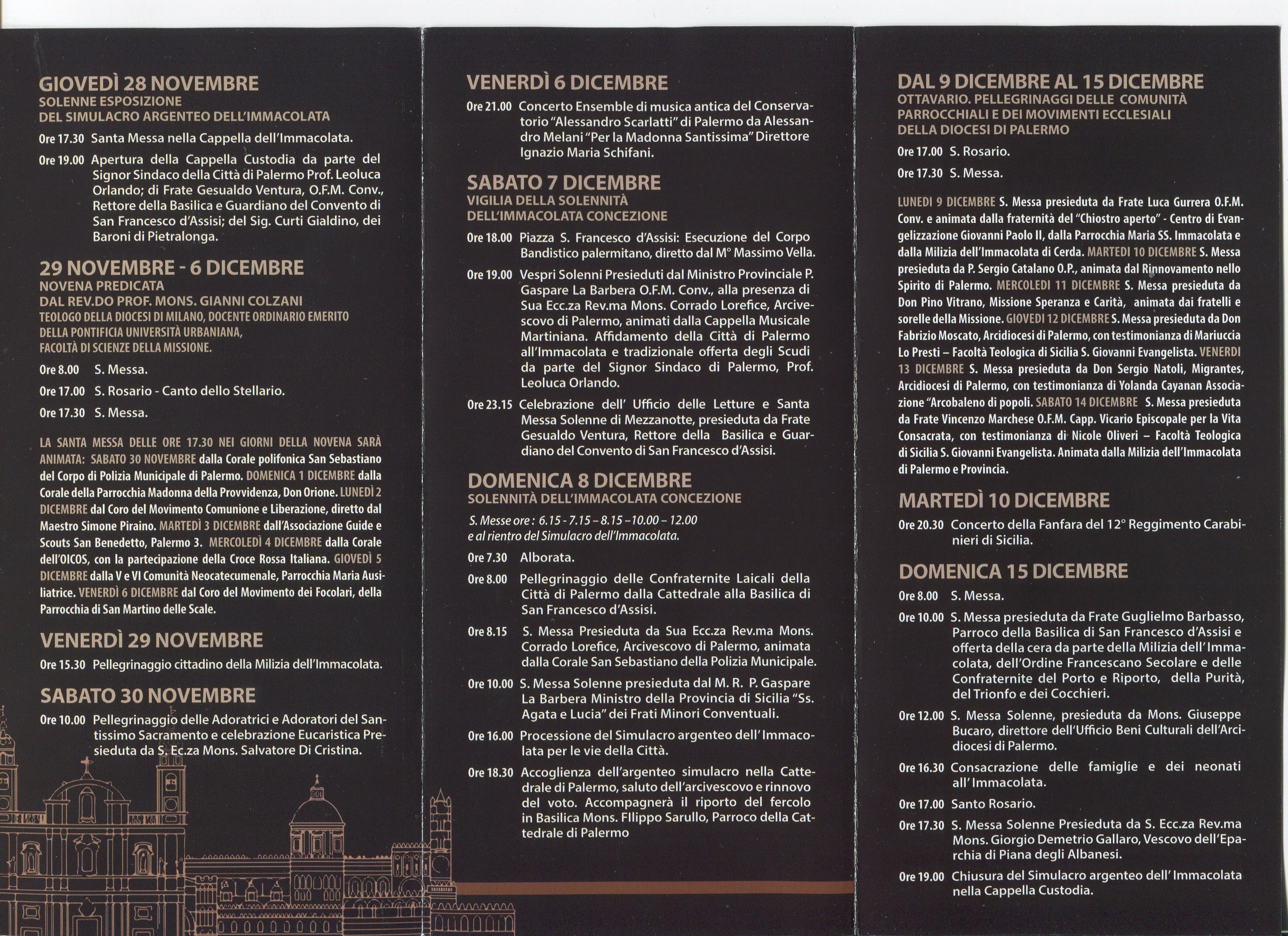 Per tutte le informazioni sulla Solennità 2019 dell'Immacolata Concezione consultare il programma allegato