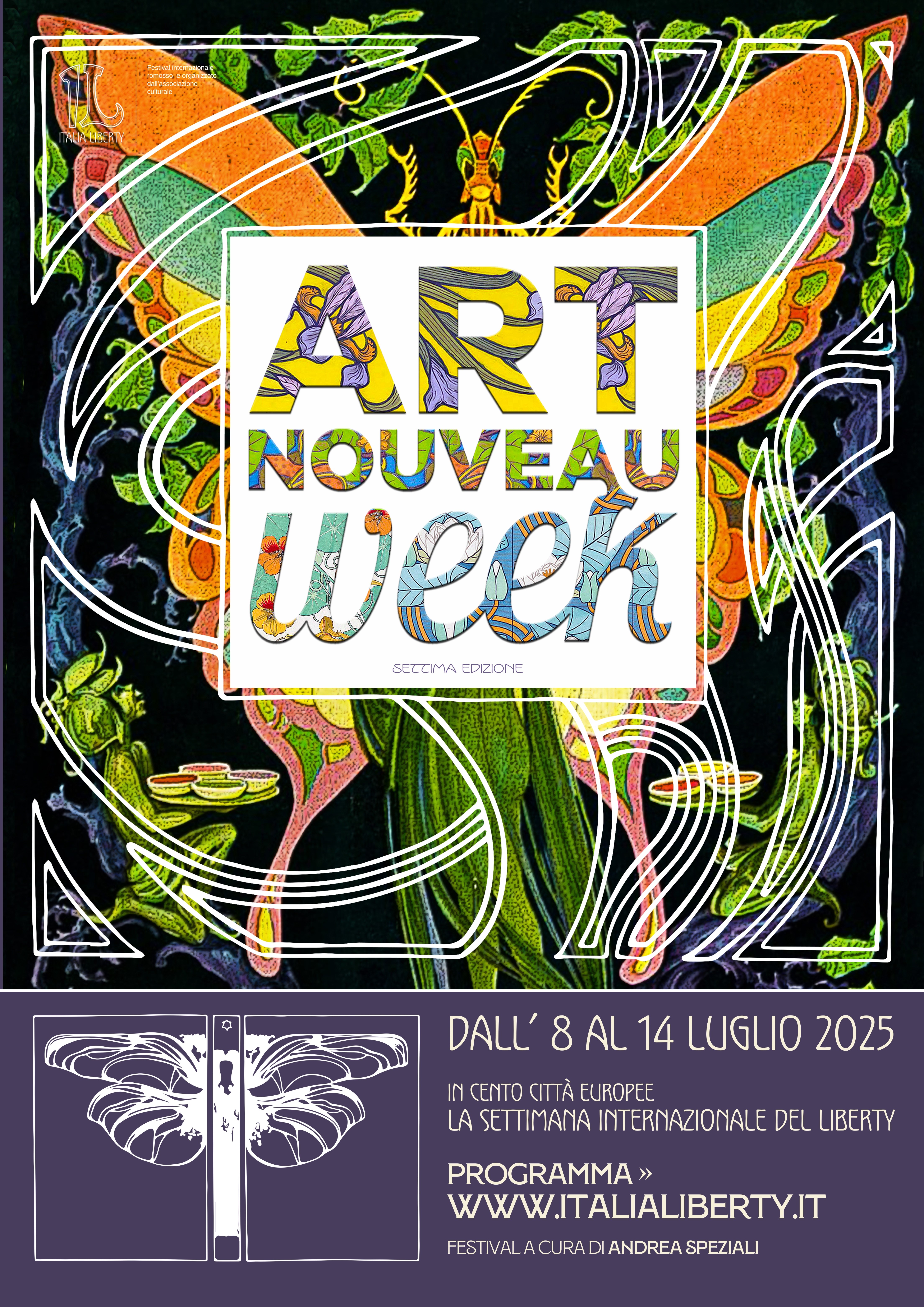 Dal 8 al 14 luglio 2025 si rinnova l’appuntamento con l’Art Nouveau Week, la manifestazione europea dedicata allo stile Liberty e alle arti di inizio Novecento. Giunta alla sua settima edizione, è promossa da Italia Liberty e curata da Andrea Speziali con un comitato scientifico e d’onore.