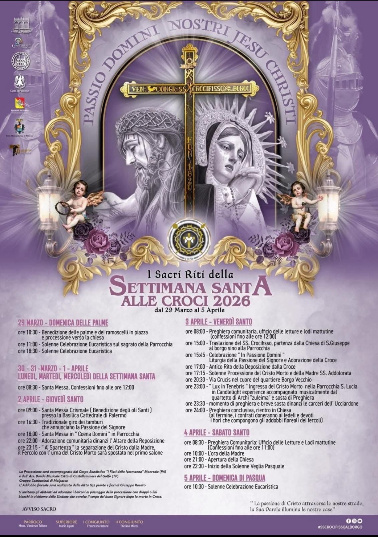 - ore 10:00 - Basilica della SS. Trinità alla Magione (Via Magione, 44) - Benedizione delle Palme davanti la chiesa di S. Euno, processione verso la Basilica e S. Messa