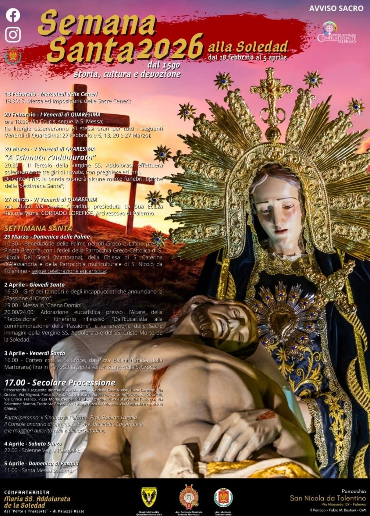 - Processione della Confraternita di Maria SS Addolorata de la Soledad (Chiesa di S. Nicola da Tolentino - Via Maqueda, 159) dalle ore 17:00